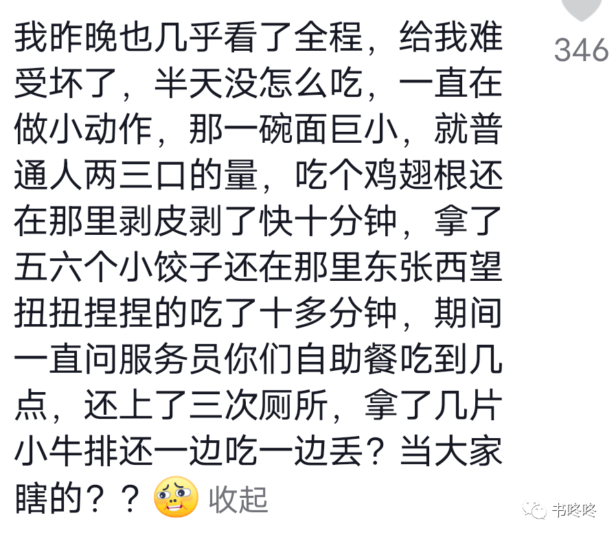 接着有人爆料,她之前吃自助餐的时候,是提前交给了老板1000块钱,让老板允许自己嚼吐。