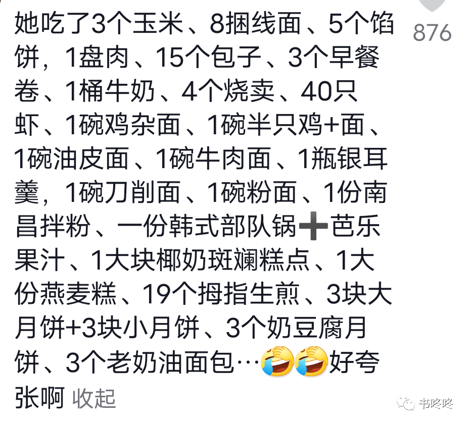 网友看到她一天吃这么多,却还这么瘦,纷纷在评论区接龙“接代谢”。