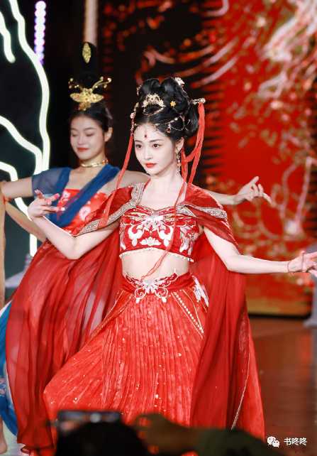 她化身异域美女,充满了异国风情的美,大典上不仅跳了舞,还展现了一段琵琶功力,氛围感直接拉满。