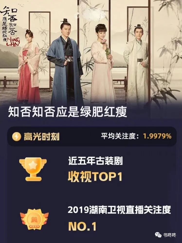 前两天无意识看了收视榜单,不看不知道,一看吓一跳,《知否知否应是绿肥红瘦》赫然排在榜首。