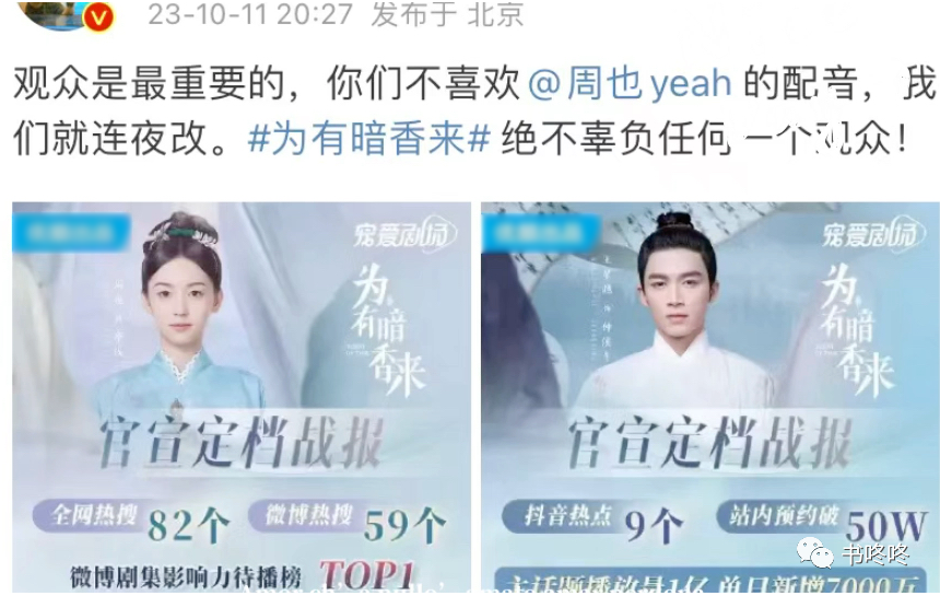 而且,于正似乎急需这部作品逆转口碑,听到观众反馈周也的配音不贴脸,立刻着手准备换配音,告诉观众会一边播一边换。