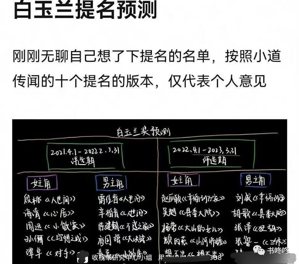 大概意思是赵丽颖如果拿下白玉兰奖,是流量涌入白玉兰奖的证据,在亵渎奖项。