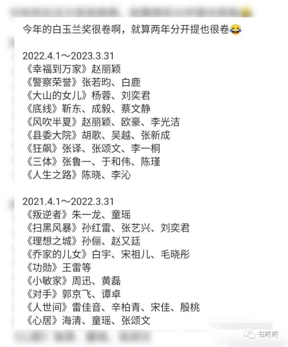 网传三年影视寒冬已经过去了,所以各种大型的演出评选活动都受到了大家的关注,白玉兰奖作为业内奖杯分量颇重的一个奖项,自然备受关注。