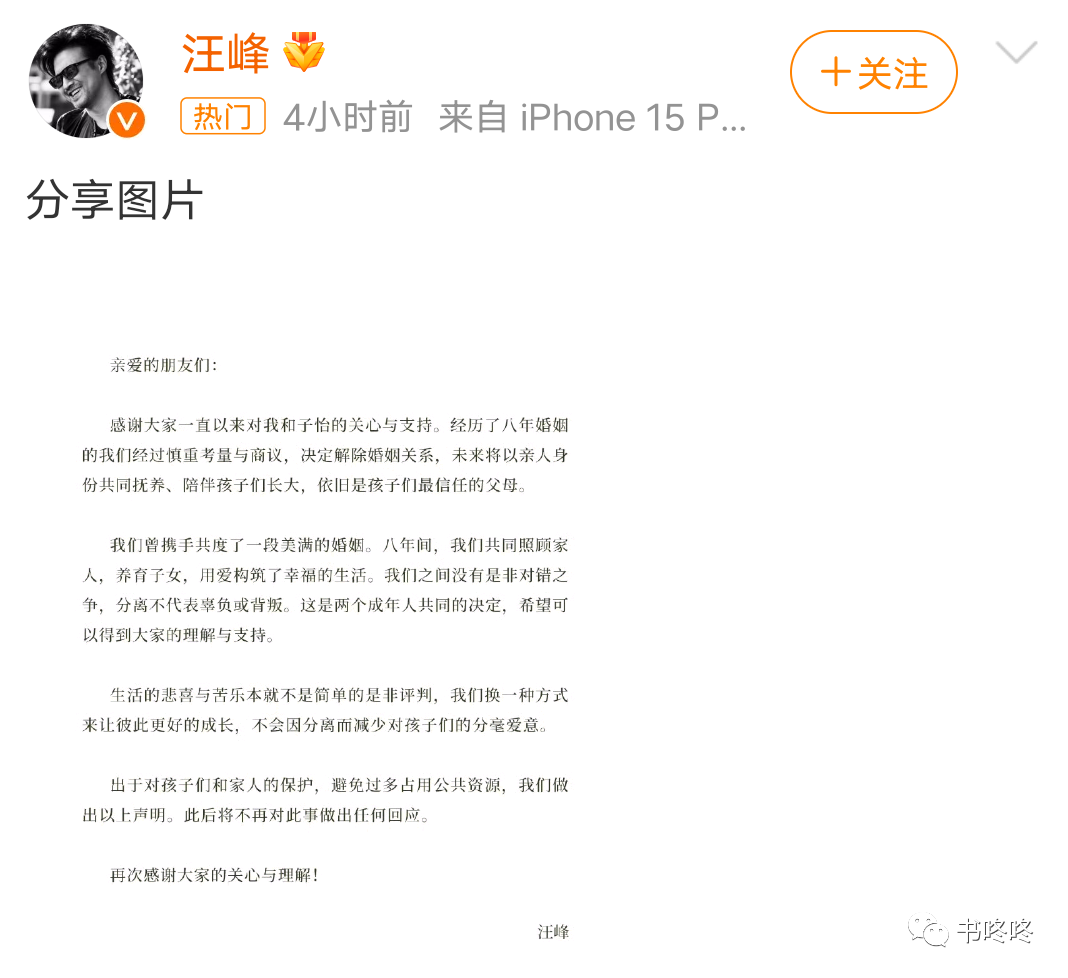 与此同时,网友关注到,这已经是汪峰第四次离婚了。