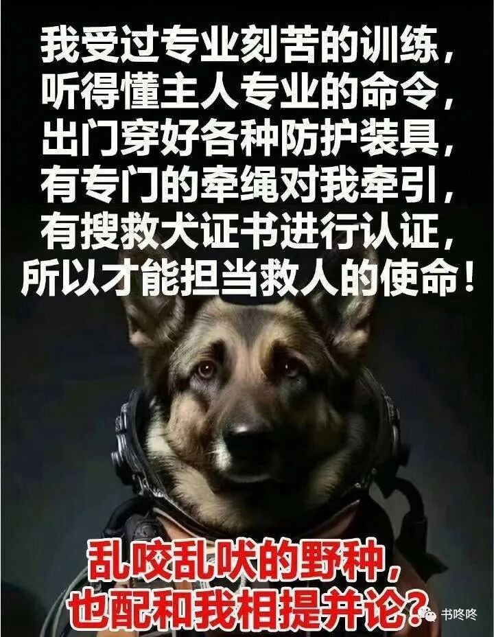 李小冉发了许多警犬救人的图片,配文“我救过你的同类,可以放过我的同类吗”。