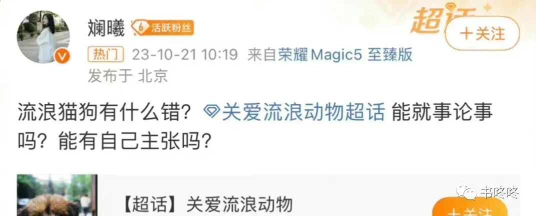 《甄嬛传》沈眉庄的扮演者斓曦发文“流浪狗有什么错?”呼吁大家就事论事,要有自己的主张。