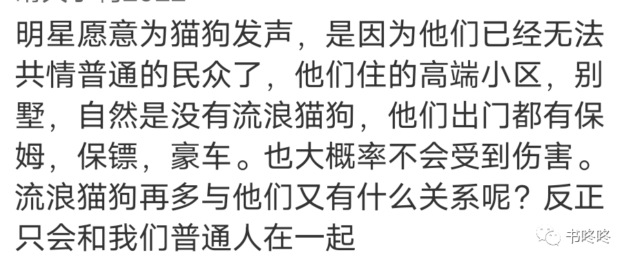 娱乐圈也有许多喜欢小动物的艺人,他们看到这样的情况,纷纷发表自己的看法,表示对驱逐和杀死流浪狗行为的不理解和不接受。