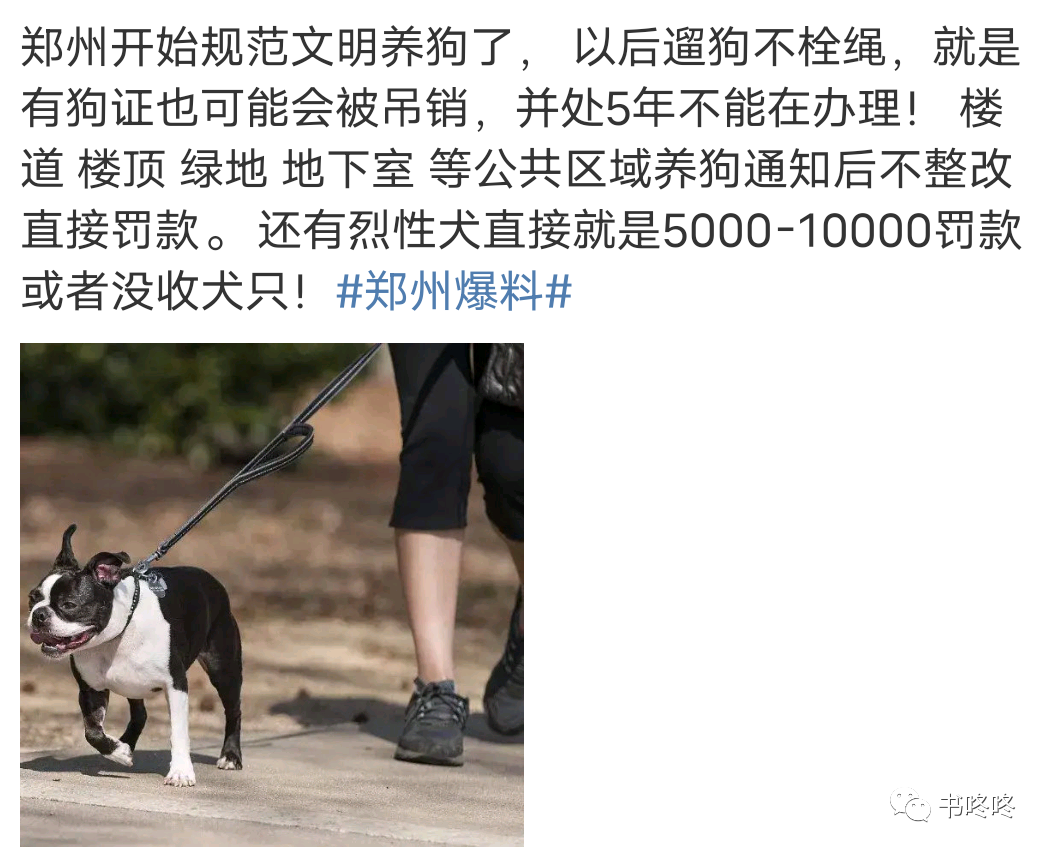 郑州等地相继发出公告,所有狗必须拴上狗链,一旦被发现会立刻采取行动,将狗送到其他更安全的地方。