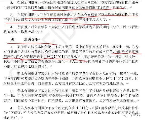 很快,一则疑似为李佳琦团队与品牌方签订的合同细则被曝光了。