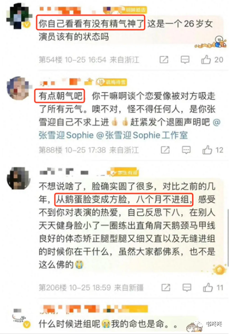 2021年,有粉丝评论张雪迎接的戏,大部分剧本很烂,希望她再提升一下演技。