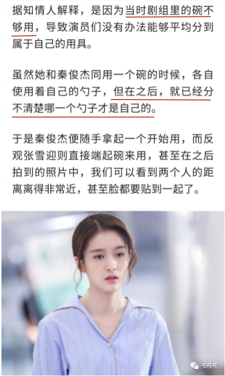 张雪迎刚吃了两口就被叫去拍戏了,等到她拍完,秦俊杰又端着碗过来了。