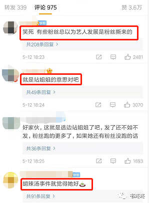 还说出“爱粉不粉,别在这儿带节奏”这样的话。