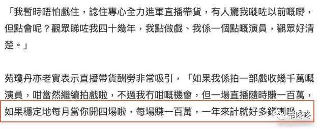 当然她也真诚地表达了自己选择直播带货的初衷,直播带货的酬劳比当演员更吸引人,还可以摆脱当演员的不安全感。