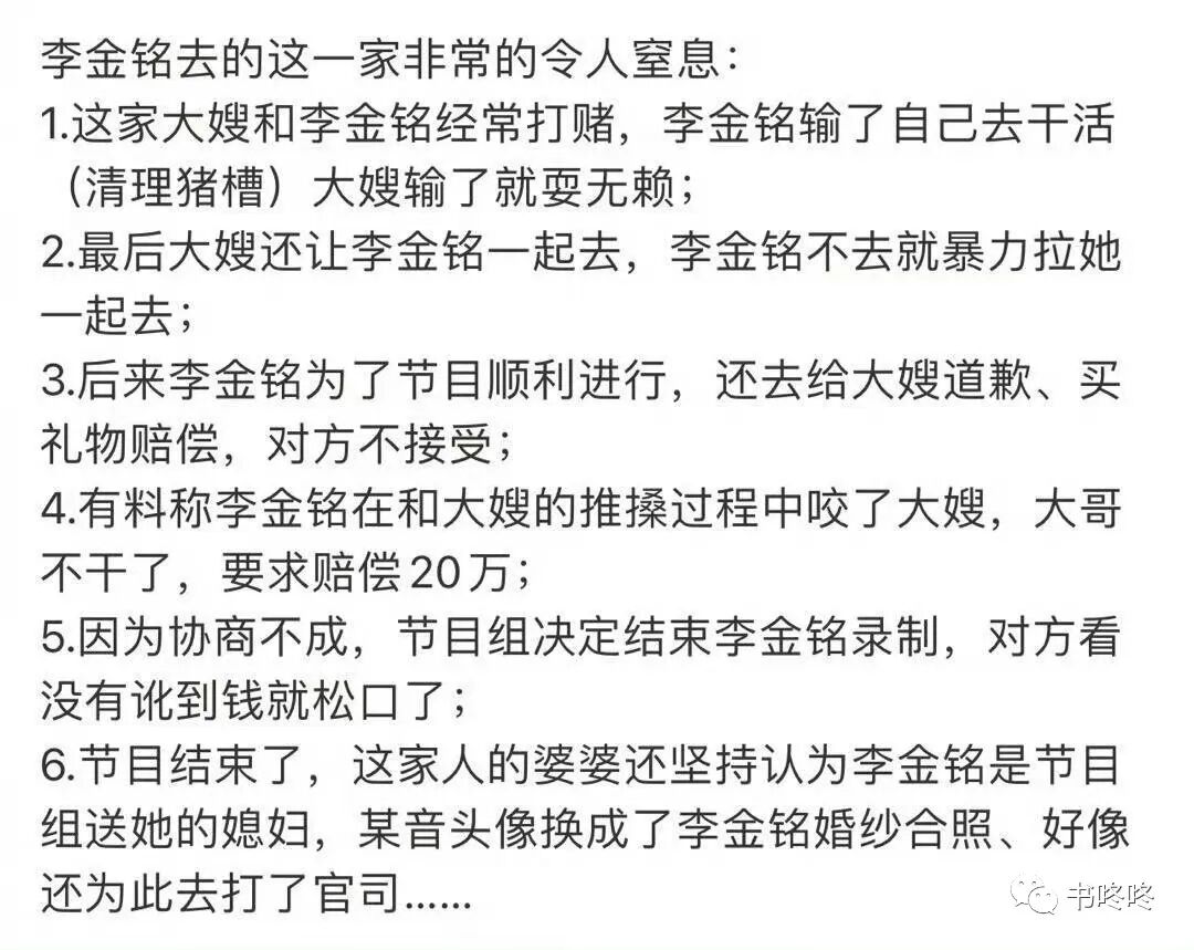 有网友说:李金铭至今未婚,大概也是当初录制节目留下来的阴影。