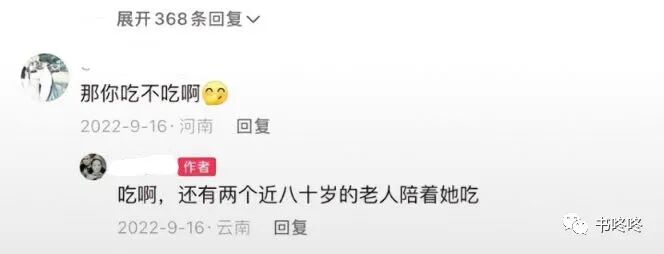 那家人的回应是:还有两个八十岁的老人陪她一起吃。