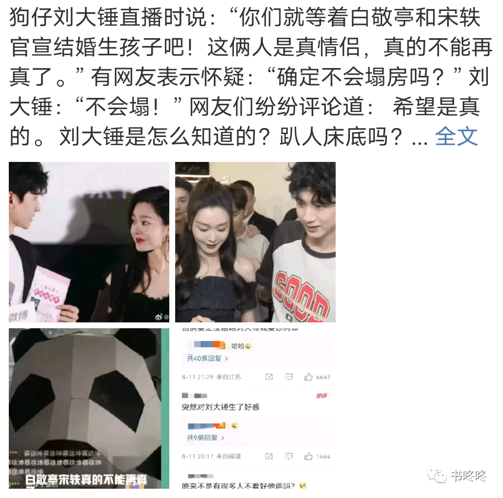 甚至开始有网友猜测,狗仔们爆出的所谓的新闻,不过是双方价格没谈拢的结果,或者某一方为了某种利益。
