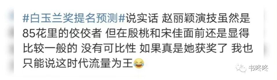 有些网友表示她是流量艺人,如果得奖的话会降低白玉兰奖的质量。