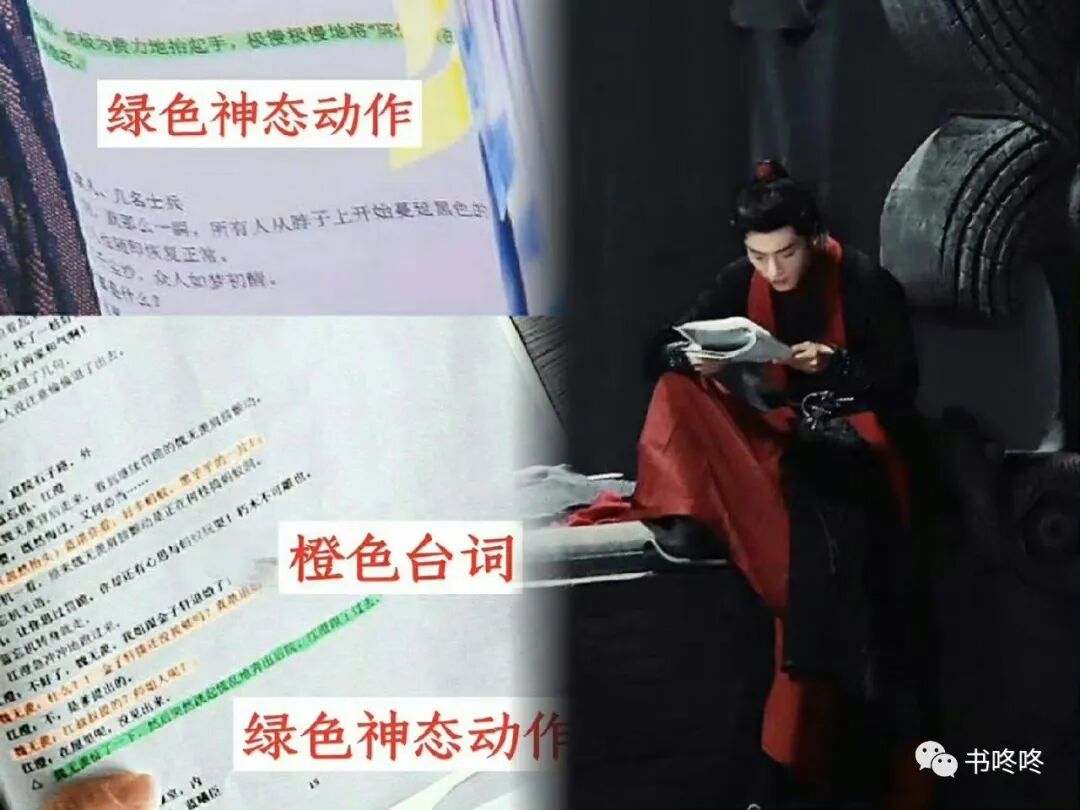之前,网上就有曝光过肖战的剧本,他每一部分都用不同的颜色标记,以便于更好的分析角色。