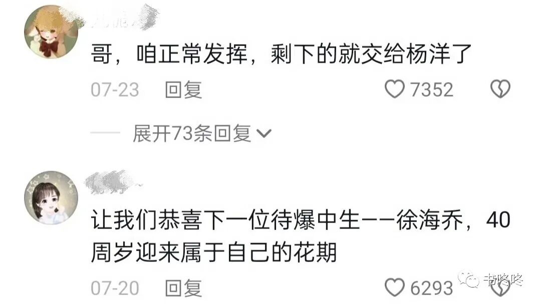 有网友猜测,这时徐海乔看着评论区陷入了沉默,连夜跟经纪人开了一个大会:为什么4个角色,一个都没谈到?