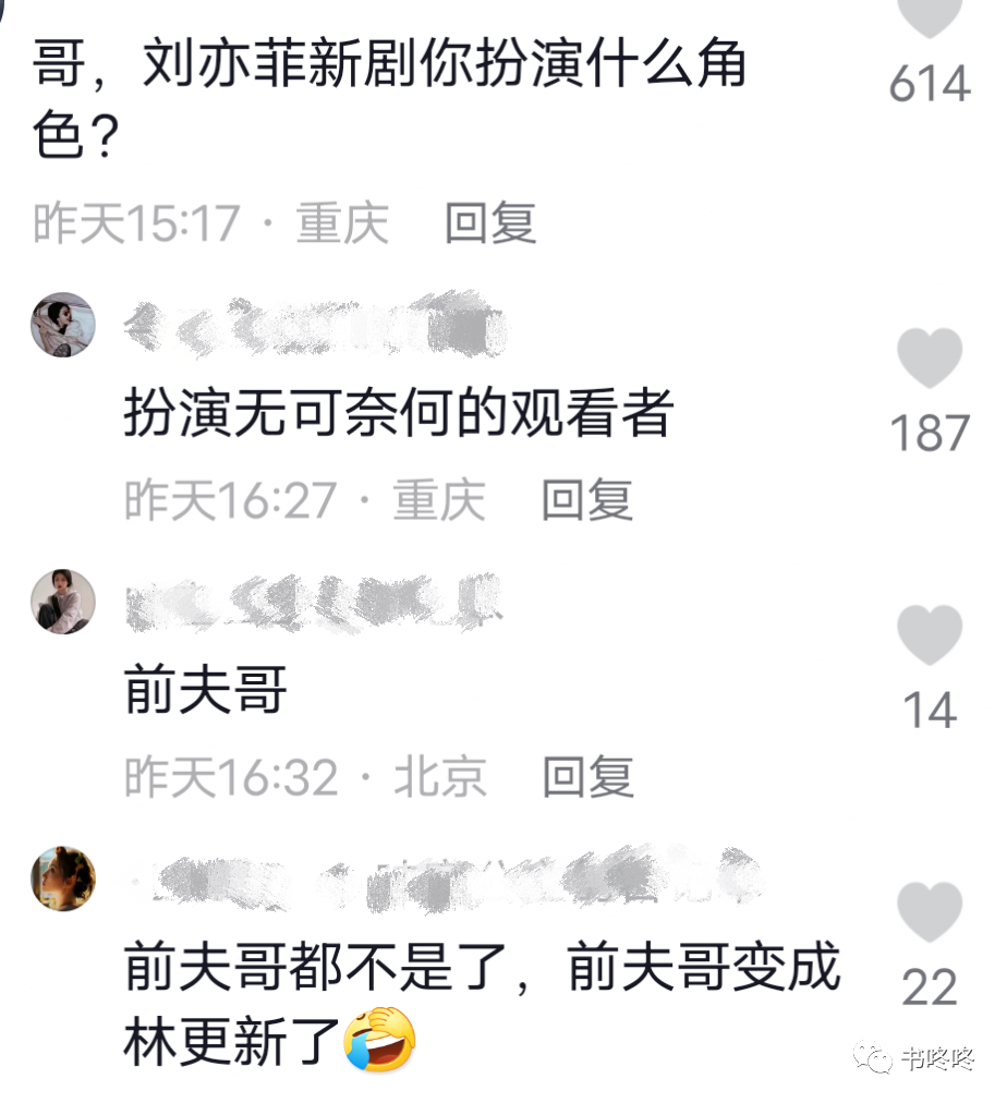 还有网友说“乔,刘亦菲新剧4个男主,你一个角色都没抢到吗?”