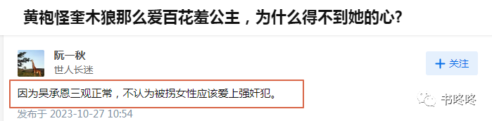 当许多网友陷入疑惑的时候,有位网友做了回复:因为吴承恩的三观正常,不认为被拐的女性应该爱上强奸犯。