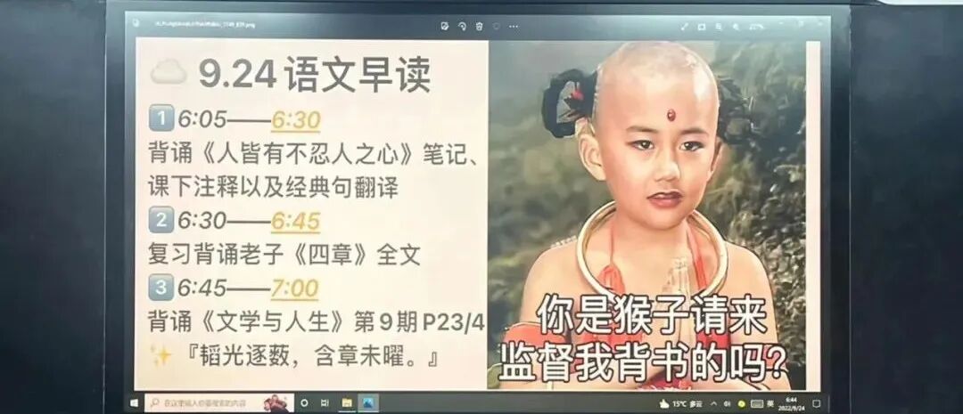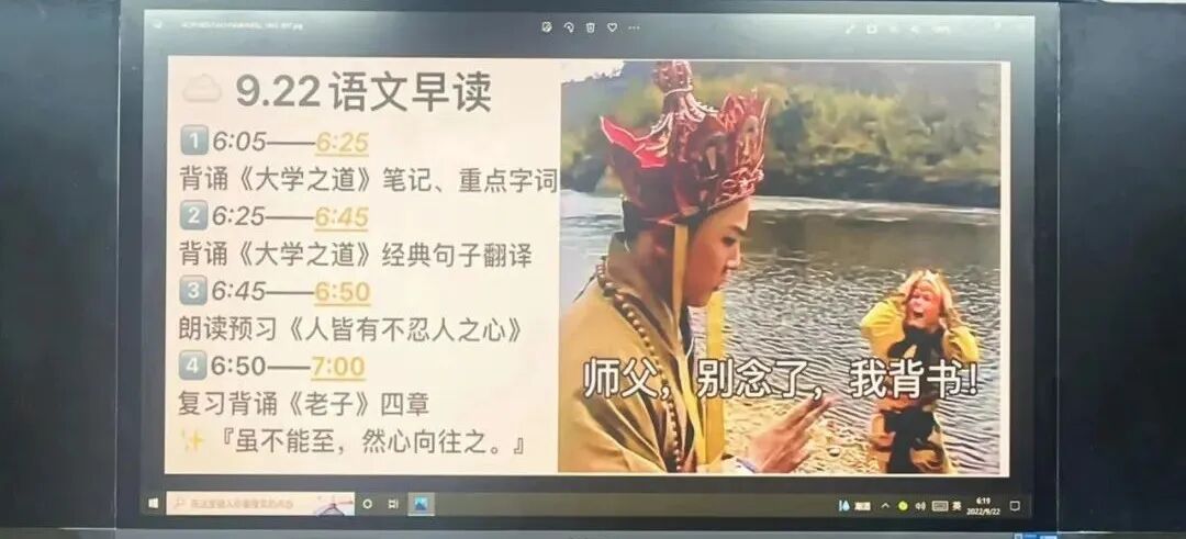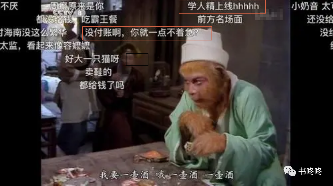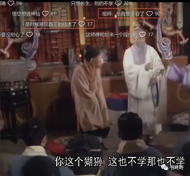 悟空离开花果山去学道,学人家吃饭说话穿衣服那一段,弹幕说“学人精上线了”。