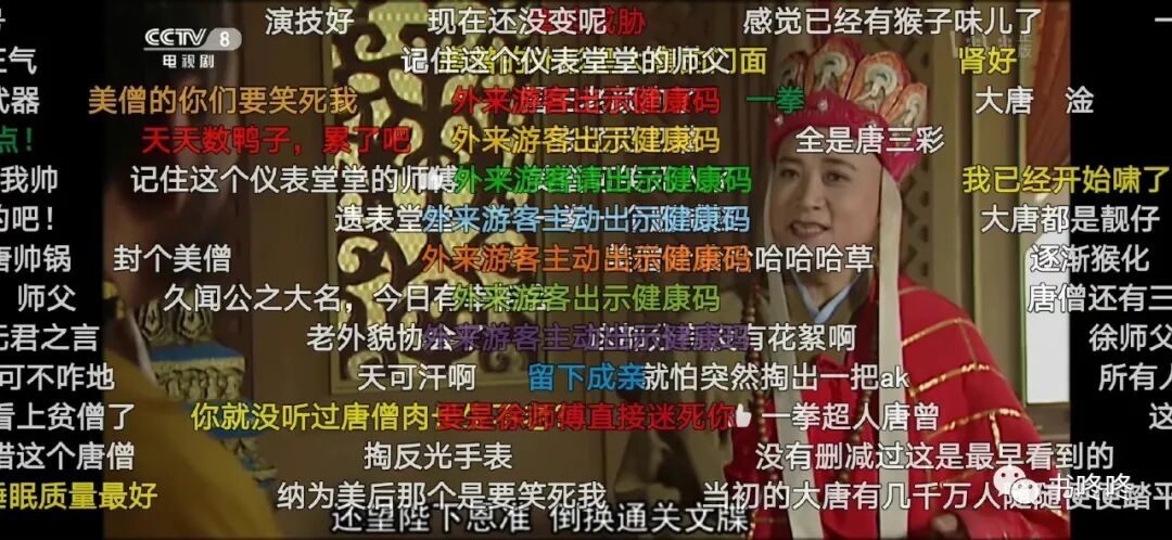 唐僧要通关文牒的时候,弹幕说“外来游客请出示健康码”。