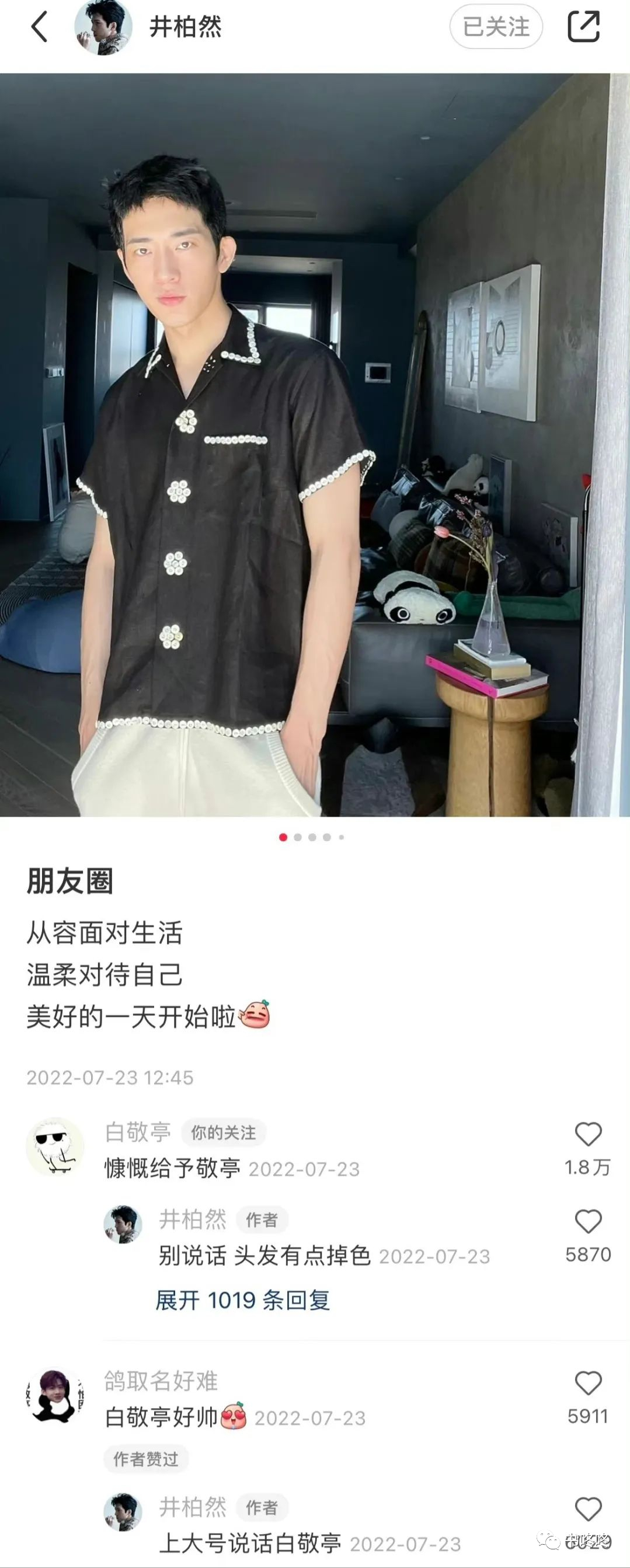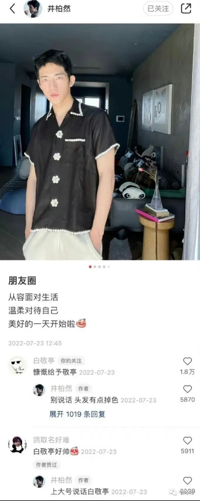 井柏然的品味很好,白敬亭是发自内心的羡慕,所以他拜托井柏然帮自己设计新家装修,平时的穿衣风格也学习井柏然。