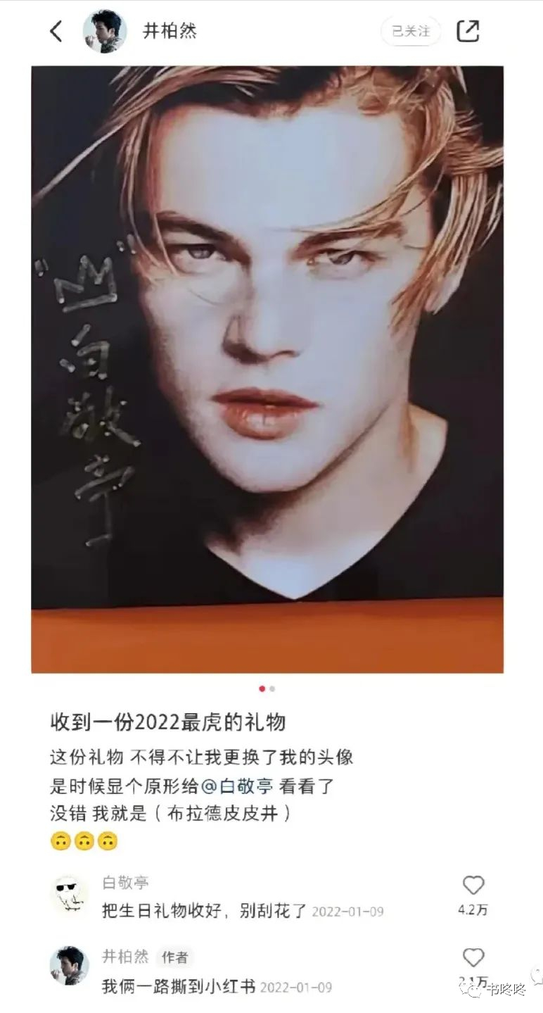 白敬亭新戏上映的时候,井柏然会发博或者搞其他花样宣传,井柏然有作品的时候,白敬亭也会动用自己的知名度助阵。