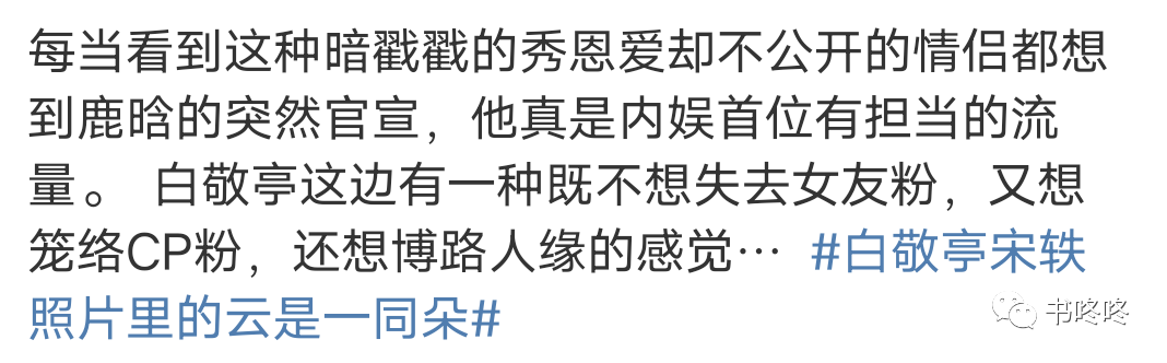 不过很快有网友扒出了白敬亭曾经的一段采访,他表示有恋情可能也不会公开,害怕观众看剧跳戏。