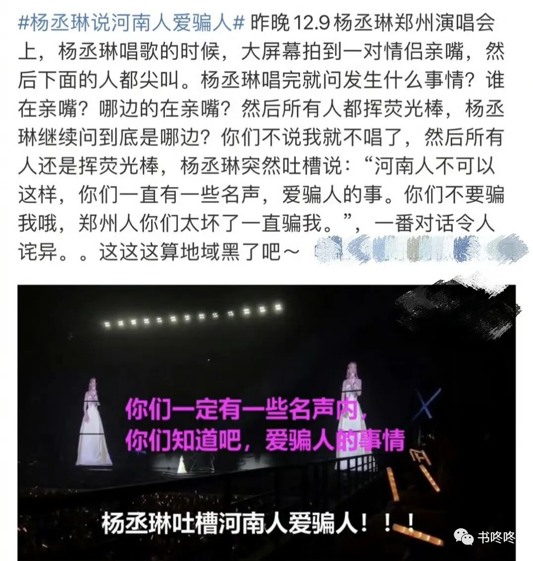 杨丞琳郑州演唱会直指“河南人爱骗人”,低情商发言惹众怒