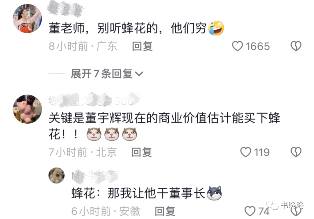 蜂花:之前去李佳琦评论区捡粉丝,现在来董宇辉这儿抢人