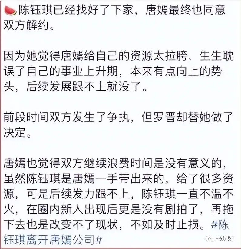 无论如何,或许是看到目前的发展受限,陈钰琪与唐嫣解约,选择自行发展。