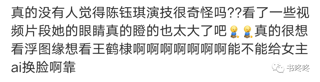 而女主陈钰琪除了两个配角出圈之外,后面是逢剧必扑,许多观众表示:本来是奔着王鹤棣去看的,但是这女主的眼球表演法,着实是欣赏不了。