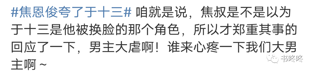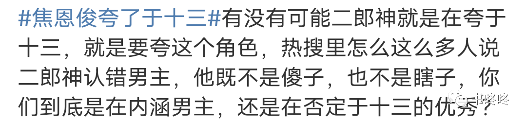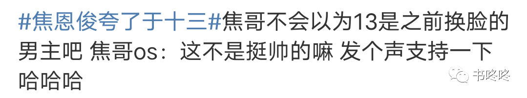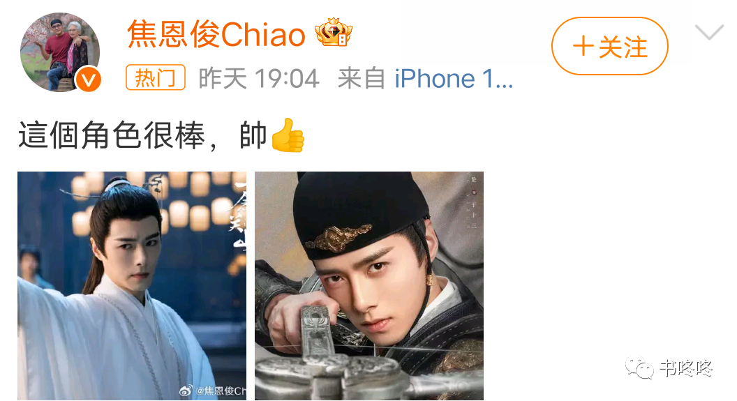 焦恩俊可能是真的喜欢于十三这个角色,也真心觉得演员和角色很帅,他只是简单的在公众平台上表示一下自己的喜好。