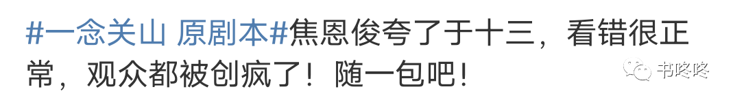 还有网友曝出过这样一条消息,说这部剧的编剧张巍因为之前的剧没播出赔了许多钱,到了《一念关山》时剧本根本没写完,为了还债才被迫续写要拍的。