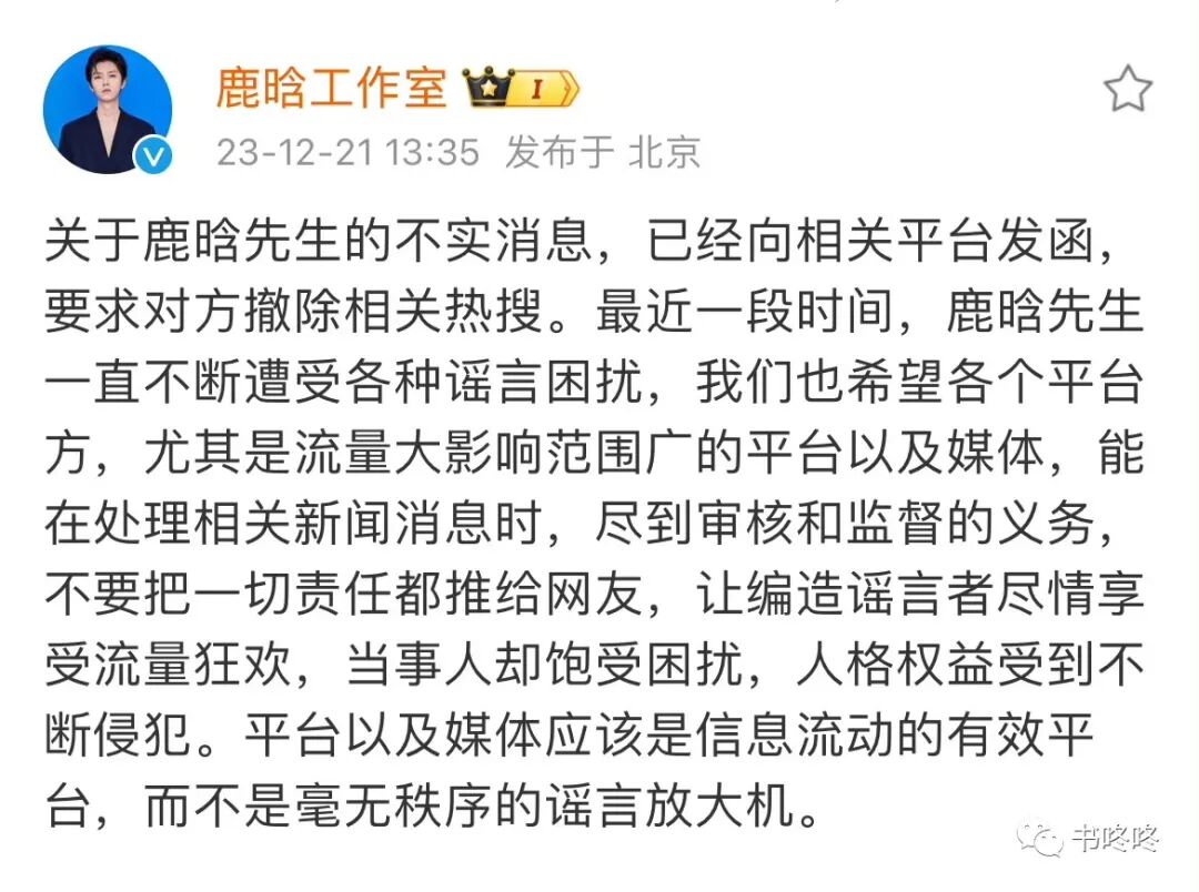 鹿晗工作室直接辟谣该传闻,其中的公关文案吸引了许多观众的注意。
