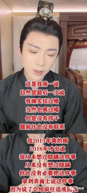 有人说他结过婚,他看到消息后趁着拍戏中场休息的时间,直接开直播回应“结婚传闻”,表示确实结过婚,但没孩子。