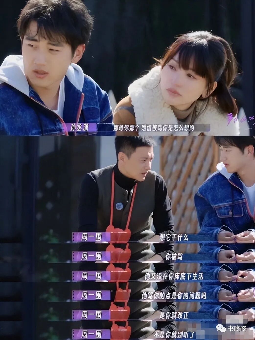节目中周一围依旧不善言辞,即便坐在朱丹身边,听到对方有容易引起误会的话,赶紧解释,也赶不上对方“造谣”的速度。