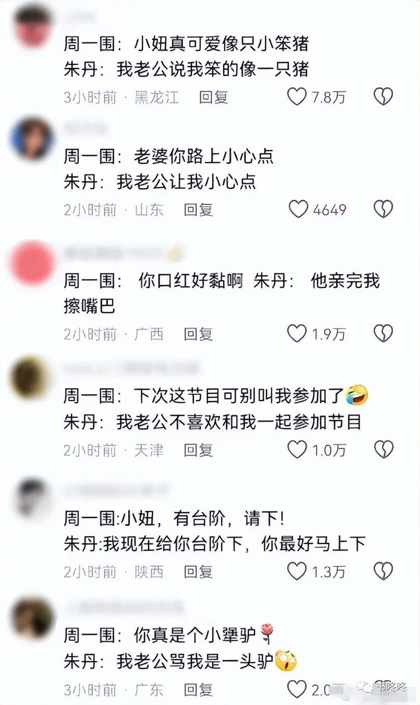 期间朱丹还替老公周一围解释过,极力想表示真实的周一围不是观众以为的那样,可惜又留给了观众一个“卑微”的形象。