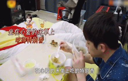 在家里吃饭,一天三顿点外卖,关键是吃饭地点在床上,甚至为了吃饭更方面,专门买了一张可以放在床上的桌子。