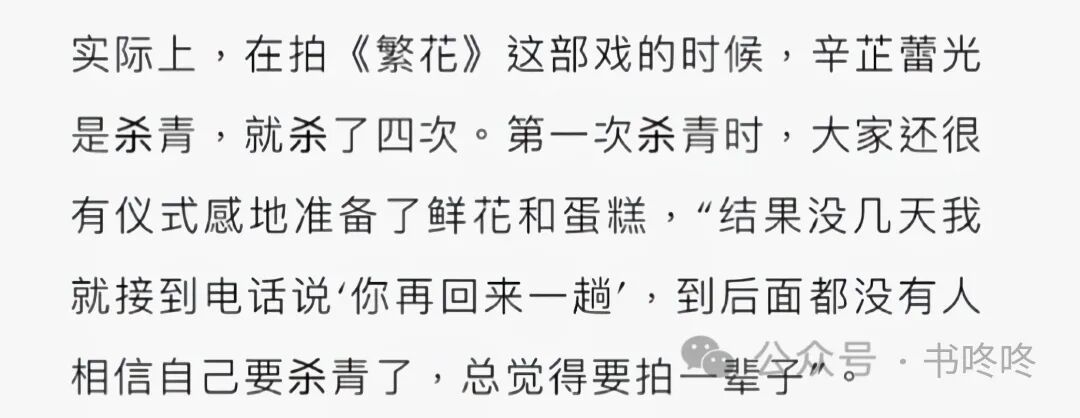 直到最近,剧中一位演员辛芷蕾说出自己杀青四次的消息,大家才知道《繁花》的演员是如何被逼疯的。