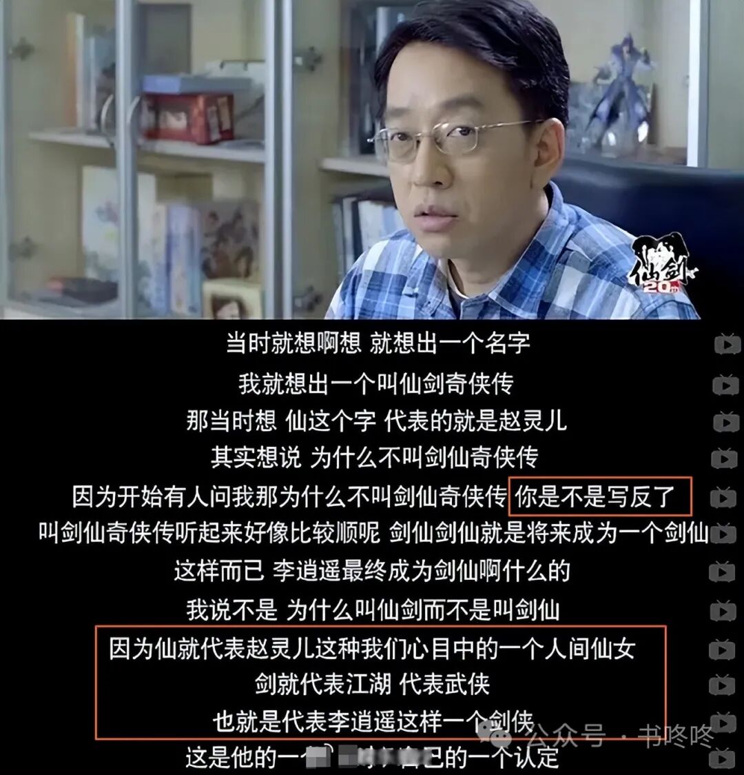他直接否认,他说仙代表的就是赵灵儿这种人间仙女,剑代表的是江湖,代表的是一种武侠精神。