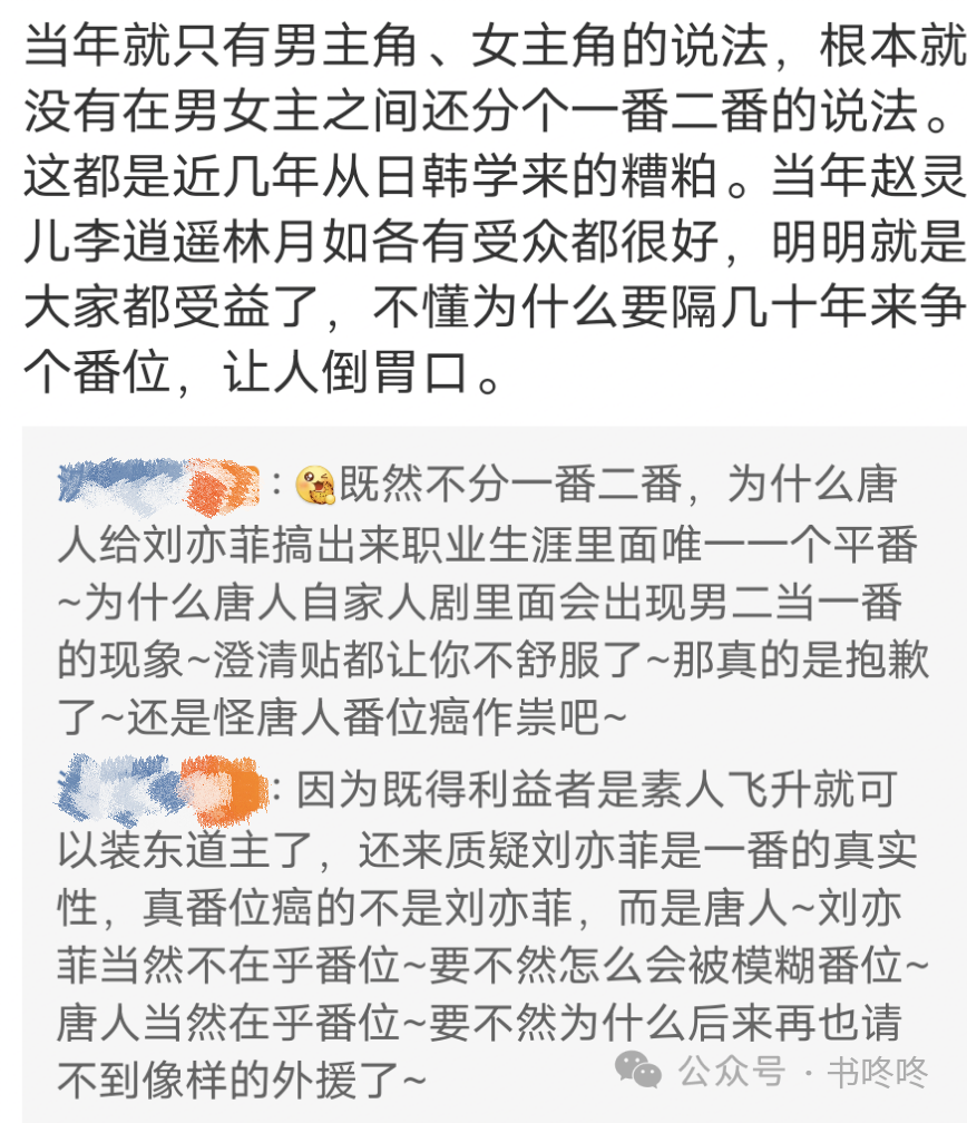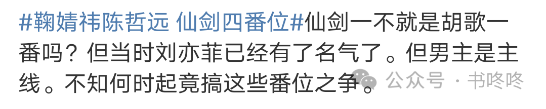 眼看战火愈演愈烈,一些清醒的人加入了战斗,表示:这场番位之争于胡歌、于刘亦菲,甚至双方粉丝来说都是无妄之灾。