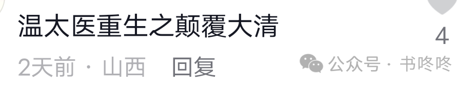 一听推翻清朝,评论区的网友瞬间兴奋了,是雍正皇帝所在的那个清朝吗?如果是的话,那咱温太医真是有仇必报啊。