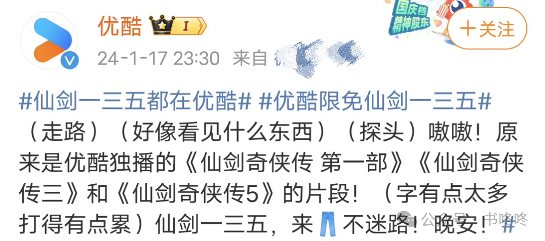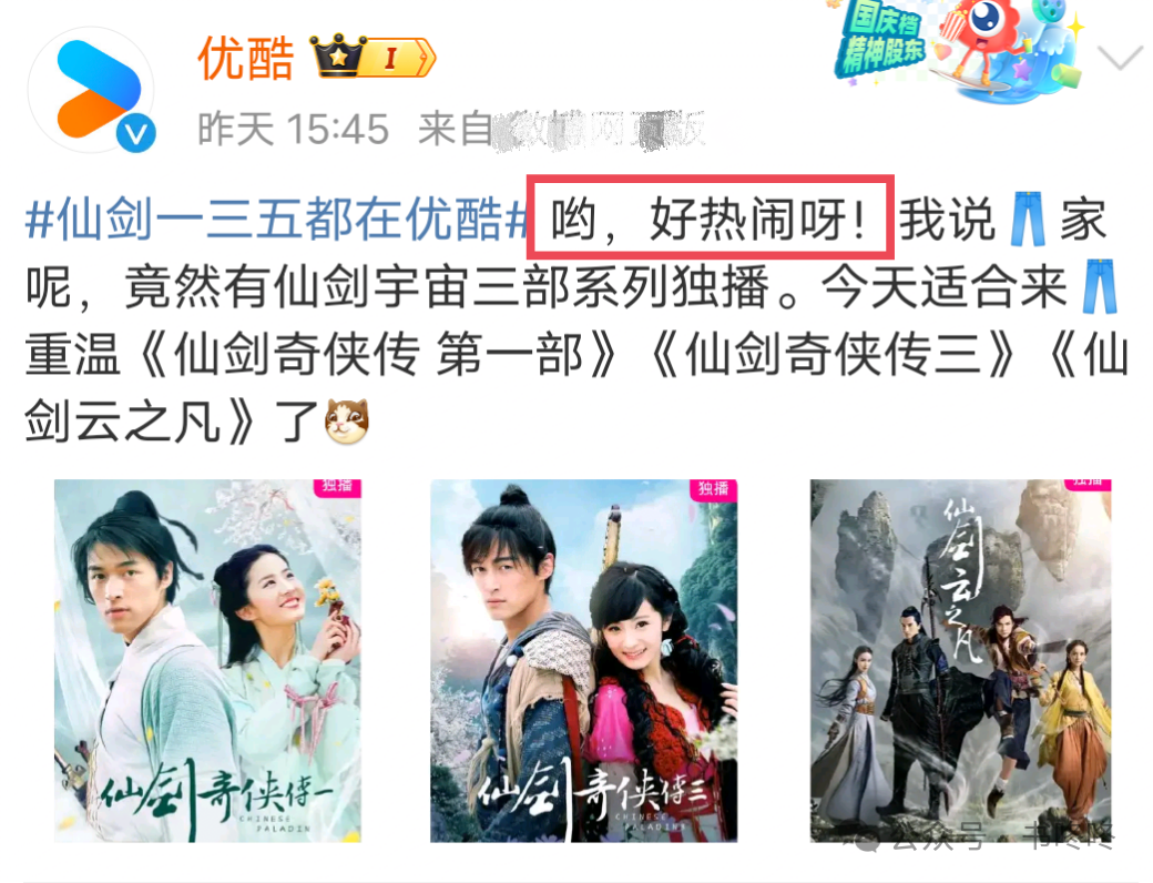 不料优酷很快加入了战场,作为手握着仙剑1、3、5资源的大户,它出手就是一个阴阳“哎呀,好热闹啊”。