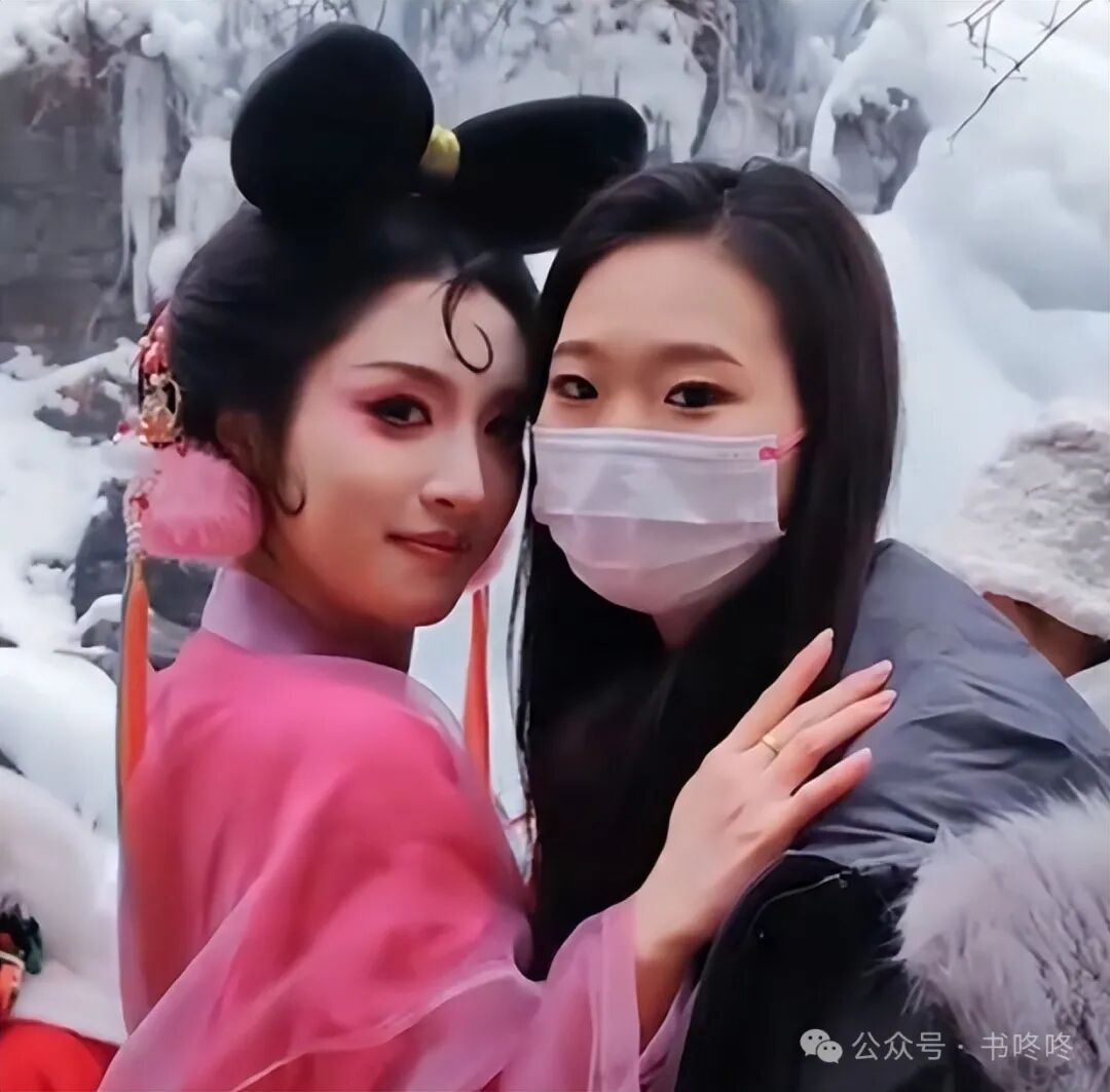 她穿着一身粉红色长衫,站在冰天雪地里,似乎丝毫不惧怕寒冷。