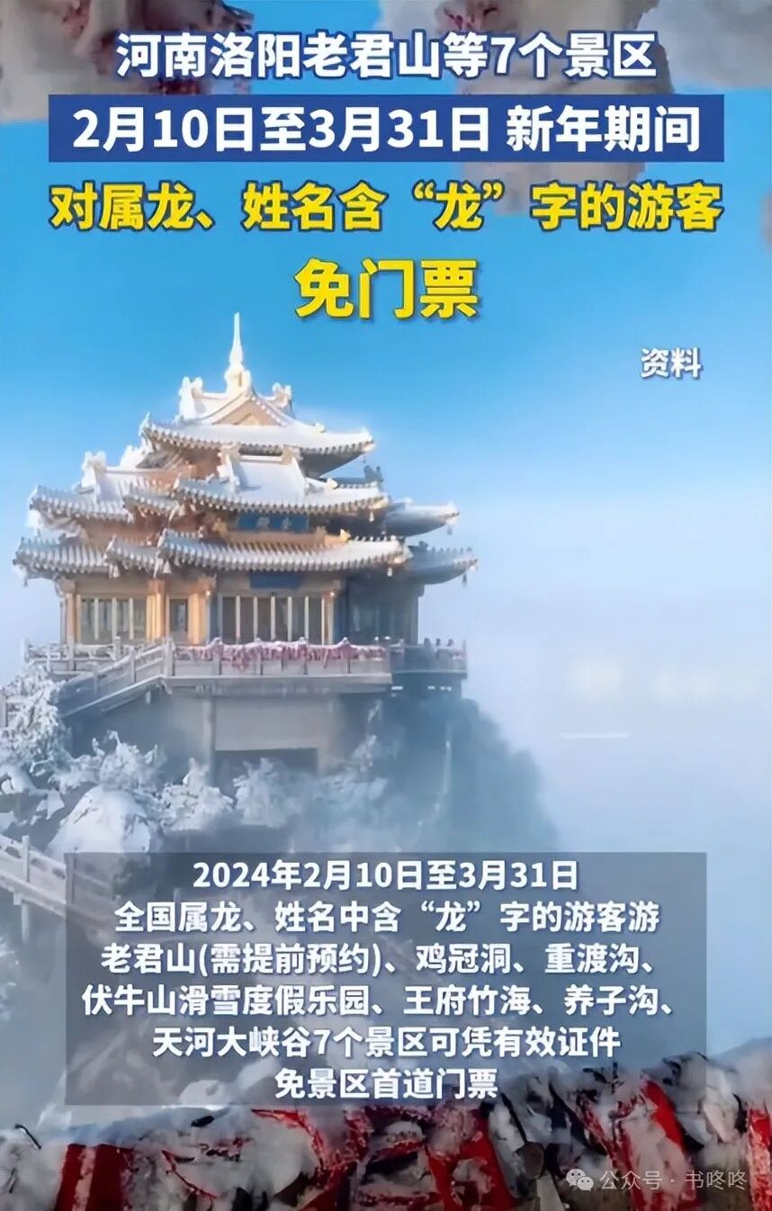 马上到来的2024年是个龙年,为了庆祝佳节,河南许多景区也展开了免门票的活动,包括洛阳老君山等等。