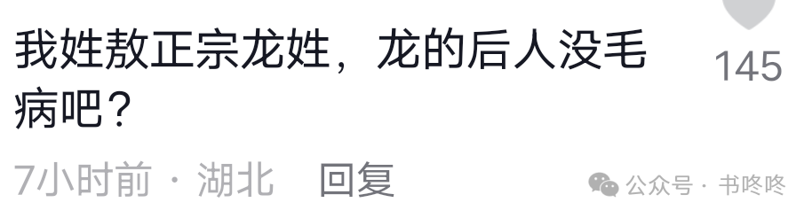 ——我敖姓,正宗龙姓,龙的后人没毛病吧?