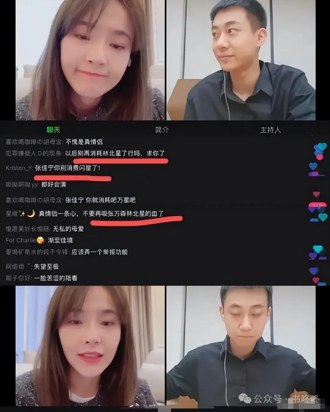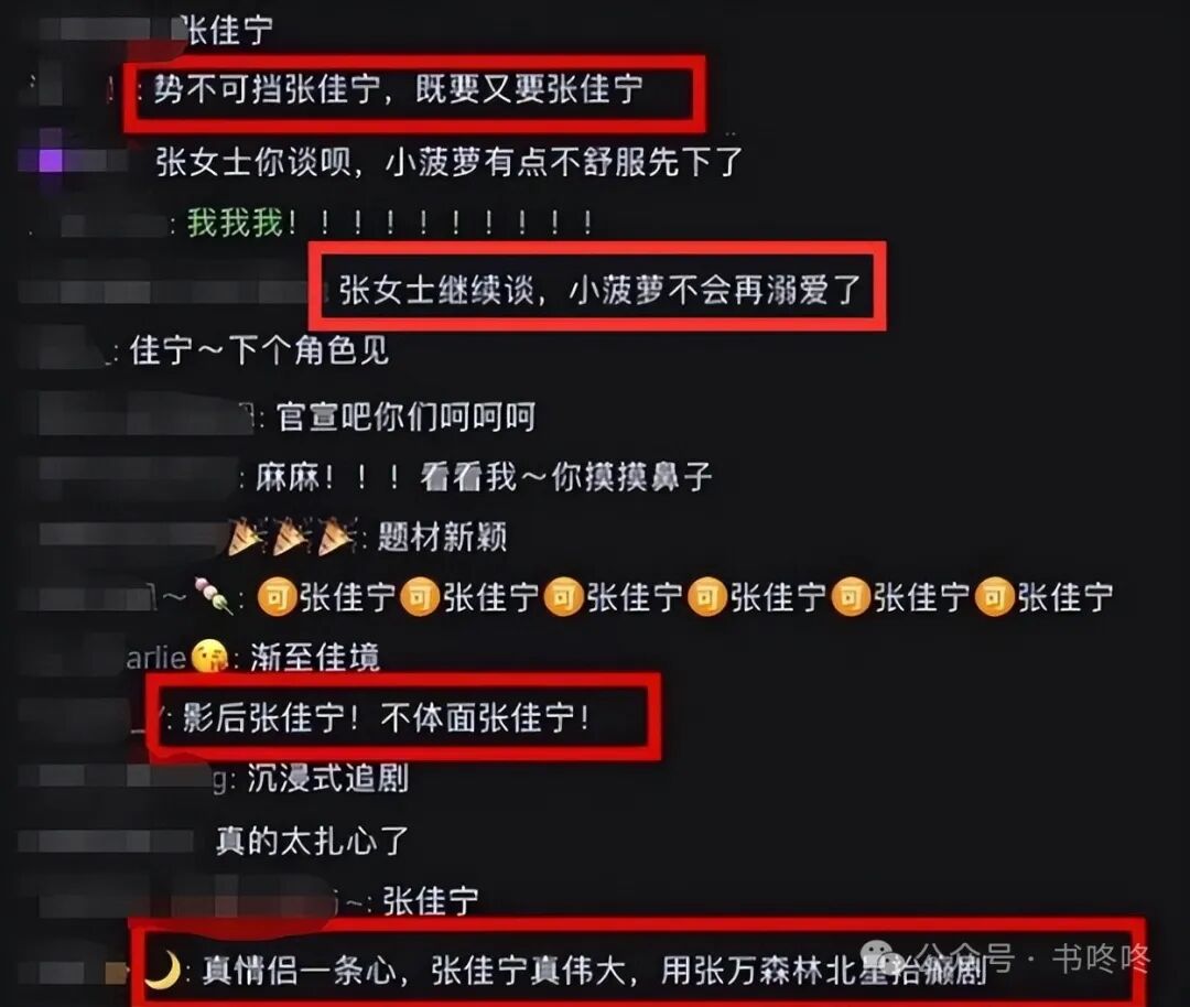 与此同时,大批的“万星CP”粉也冲进了直播间,或许是入戏太深,或许是有其他的原因,看到张佳宁在与别的男生炒CP,或者是剧粉不满被后者有意蹭热度的行为。